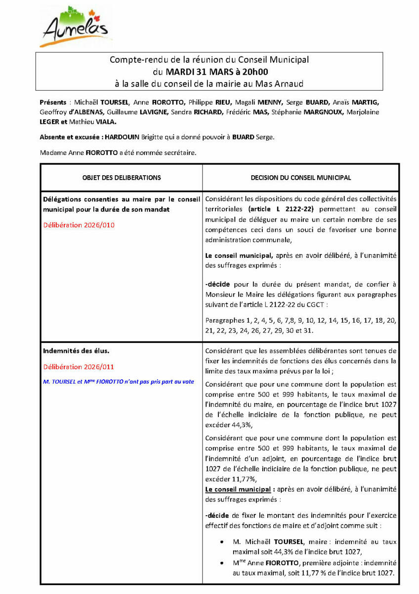 INFO MAIRIE - Conseil Municipal 31/03/2026