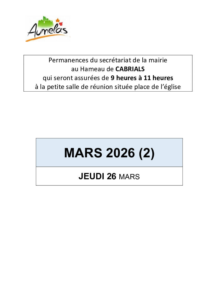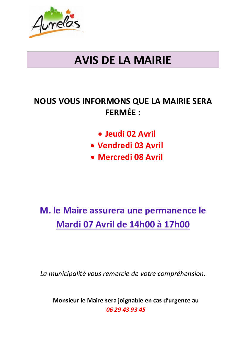 INFO MAIRIE - Fermeture & Permanence MAIRIE