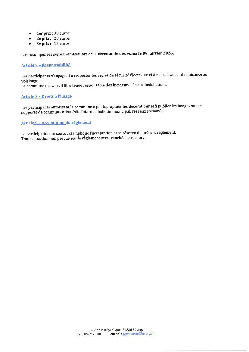 Nous vous invitons tous à vous inscrire pour faire scintiller votre maison ; en Mairie ou à La Poste ainsi que sur communication@belarga.fr du 05 au 20 décembre (règlement intérieur disponible en pièces jointes et sur le site de la Mairie).