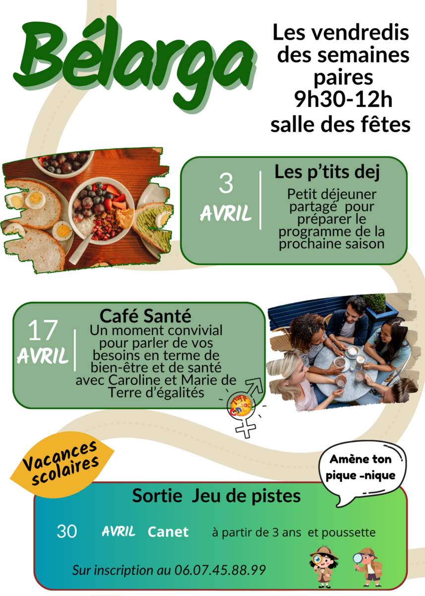 Nous serons dans la salle des fêtes de Bélarga de 9h30 à 12h les vendredis de semaines paires et vous proposerons :