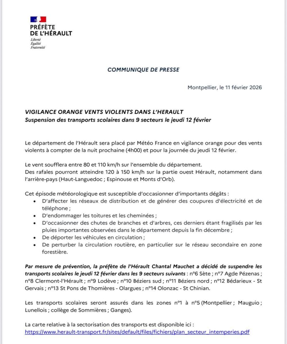 🌬️🌬️ Alerte Orange Vent Violent dans l’Hérault 🌬️