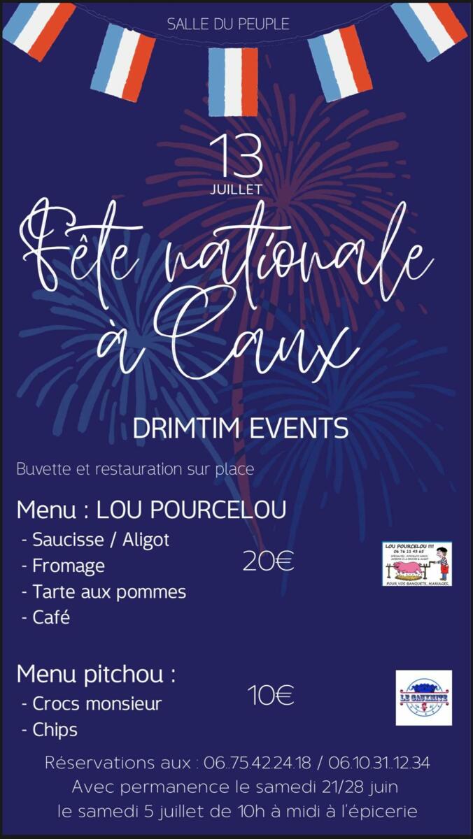 13 juillet à Caux : réservation des repas du feu d'artifice