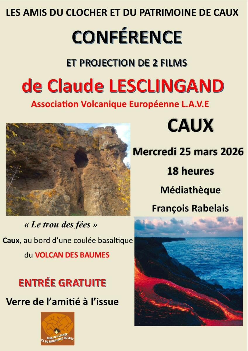 L'association "Les Amis du Clocher et du Patrimoine de Caux" organise une conférence mercredi 25 mars 18h à la salle de réunion de la médiathèque.