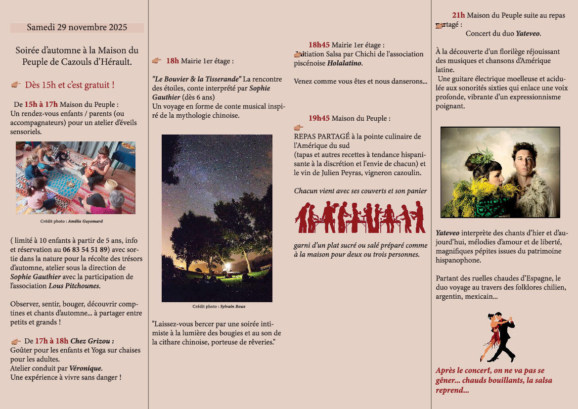 FETE 19/11/2025 FETE DE L'AUTOMNE Organisée par Cazouls Animations SAMEDI 29 NOVEMBRE à partir de 15h