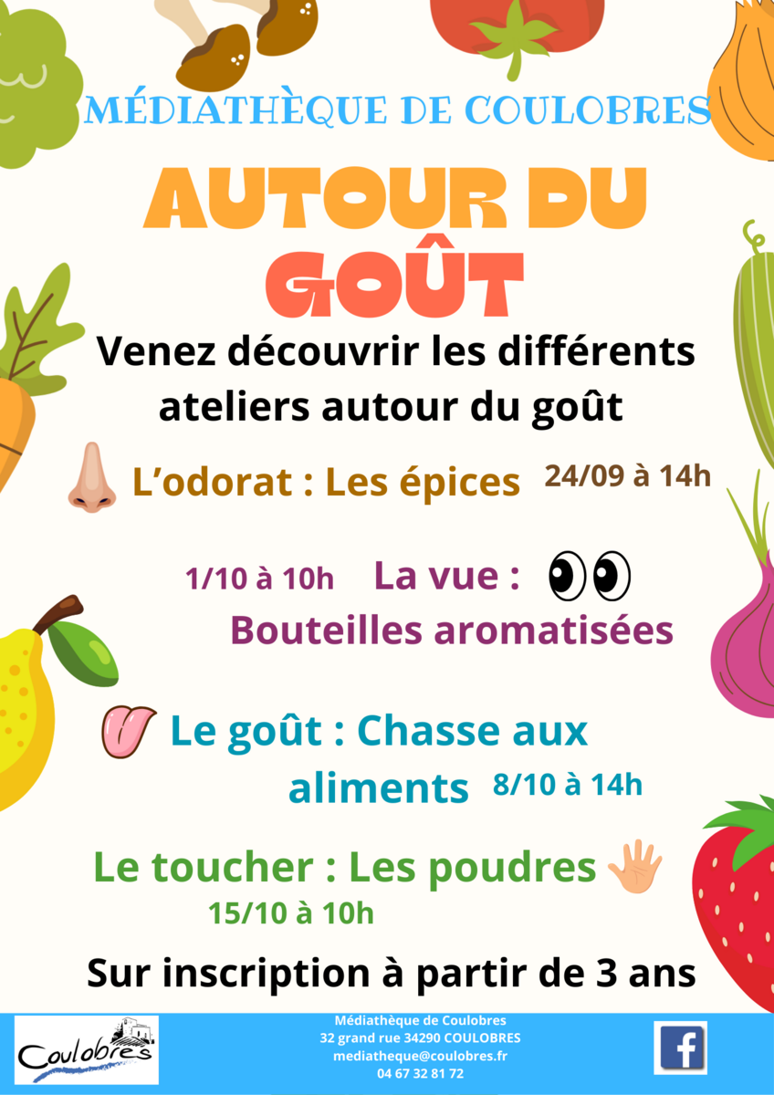 Atelier " Autour du Goût" 03/09/2025 Nous débutons nos animations avec des ateliers "Autour du Goût" Sur inscriptions, à partir de 3 ans.