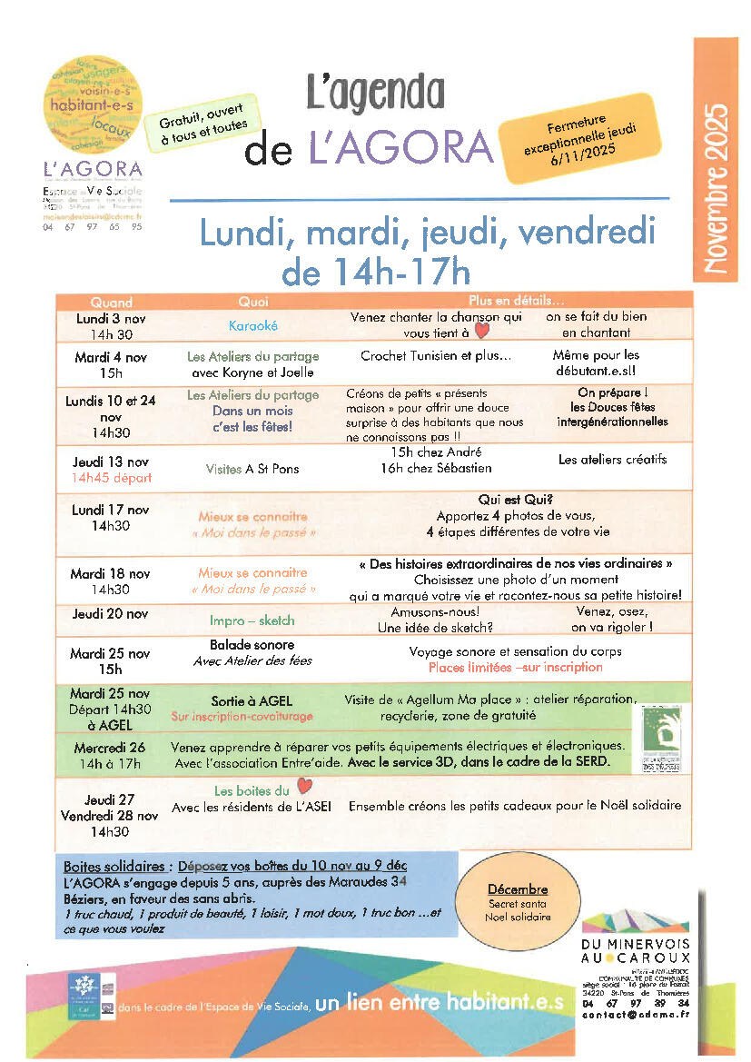 SAINT PONS : Agenda AGORA du Mois de Décembre 2025