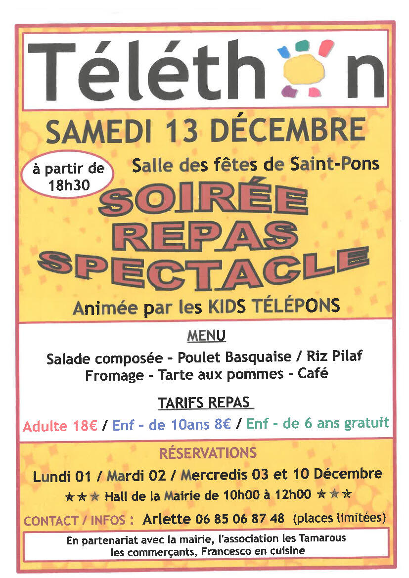 SAINT PONS : Téléthon le 13 Décembre 2025