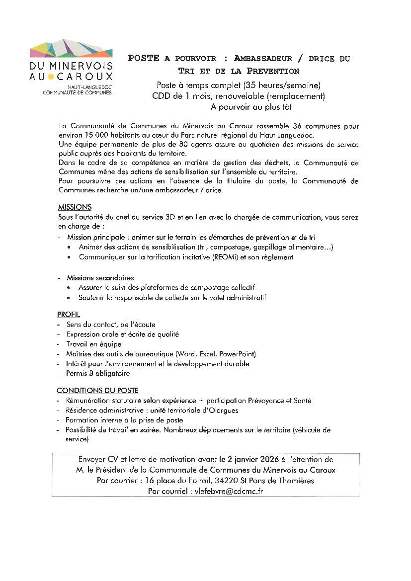 OLARGUES : Poste à pourvoir Ambassadeur/drice du Tri