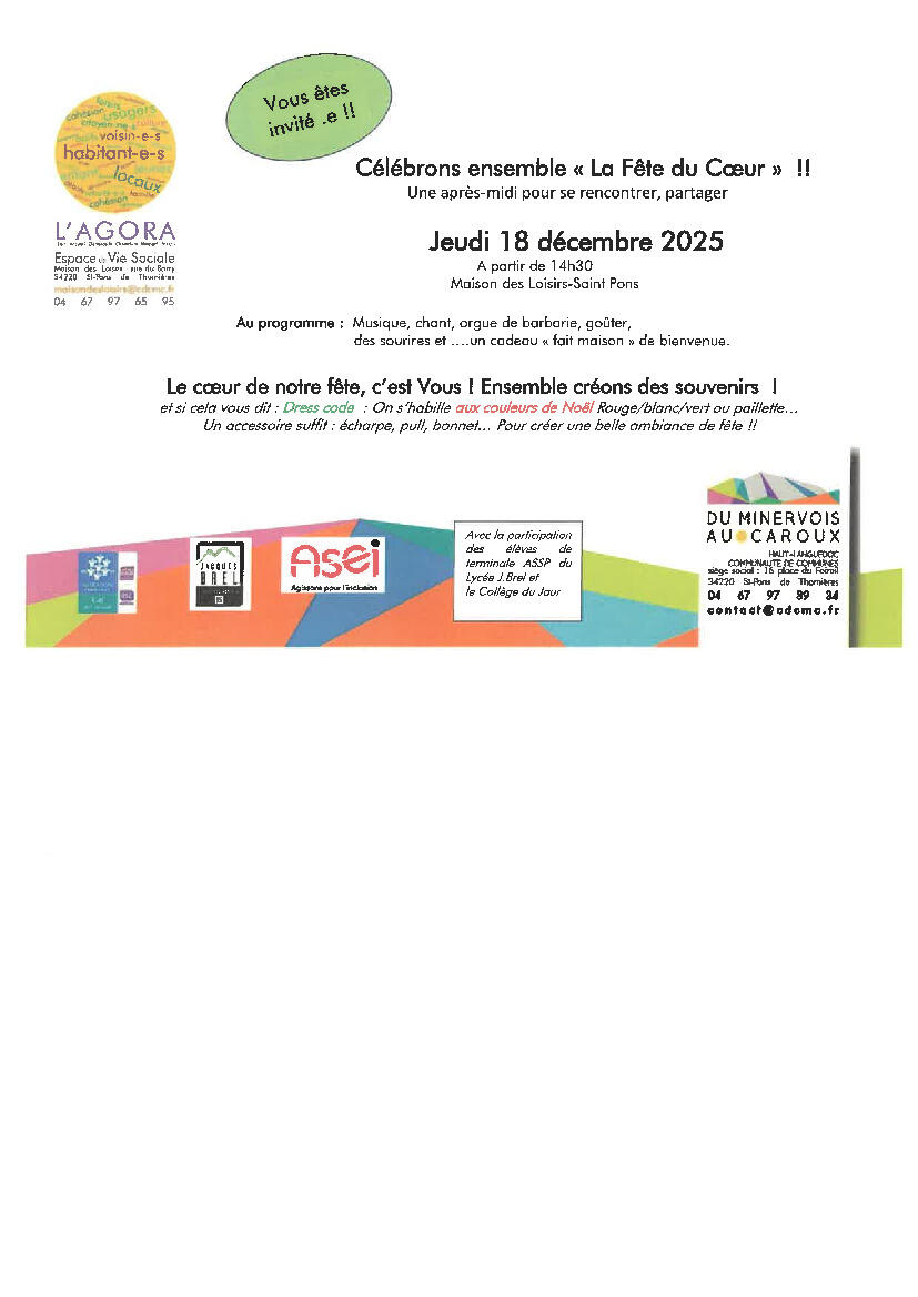 SAINT PONS : L'Agora Célébrons "La Fête du Coeur" le 18.12