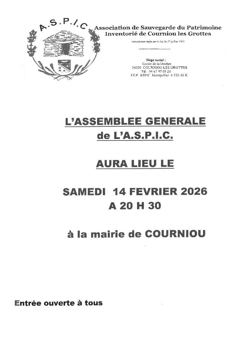 COURNIOU : Assemblée Générale ASPIC le Samedi 14.02.26