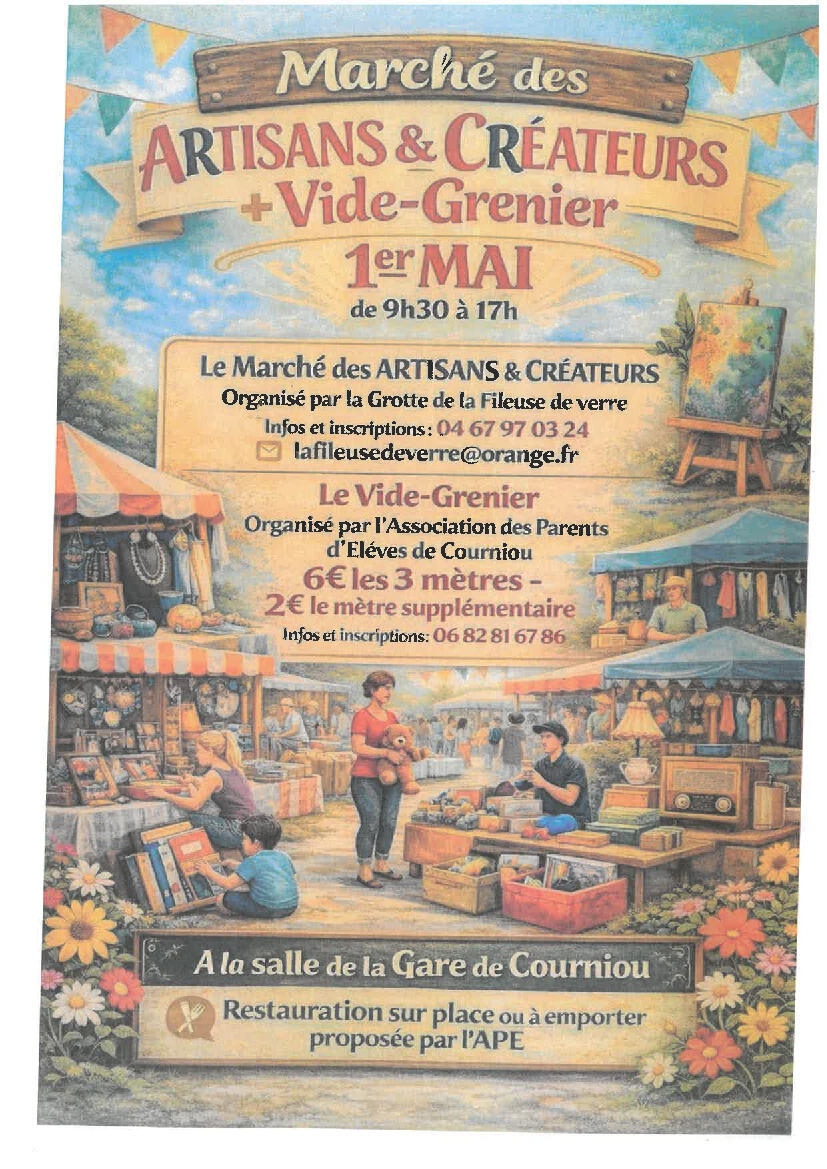 Votre mairie / Actualités / COURNIOU : Artisans et Créateurs + Vide grenier 1e Mai 2026
