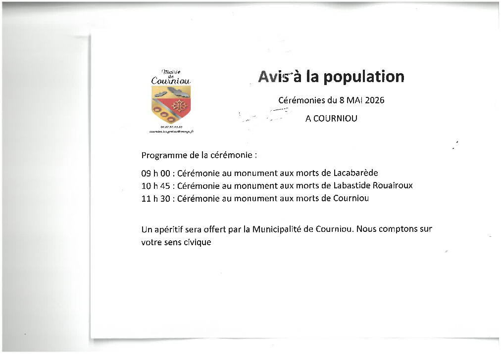 / COURNIOU : Cérémonies du 8 Mai 2026