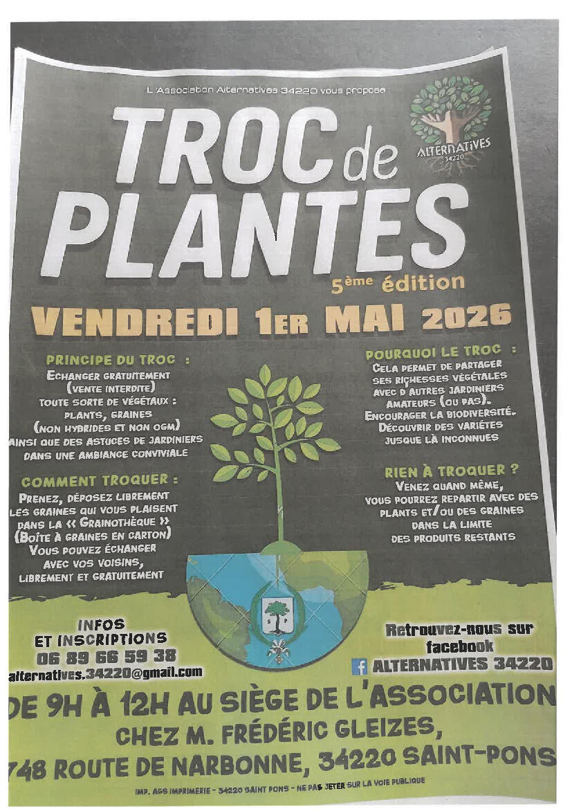 / SAINT PONS : Troc de plantes le 1e Mai 2026