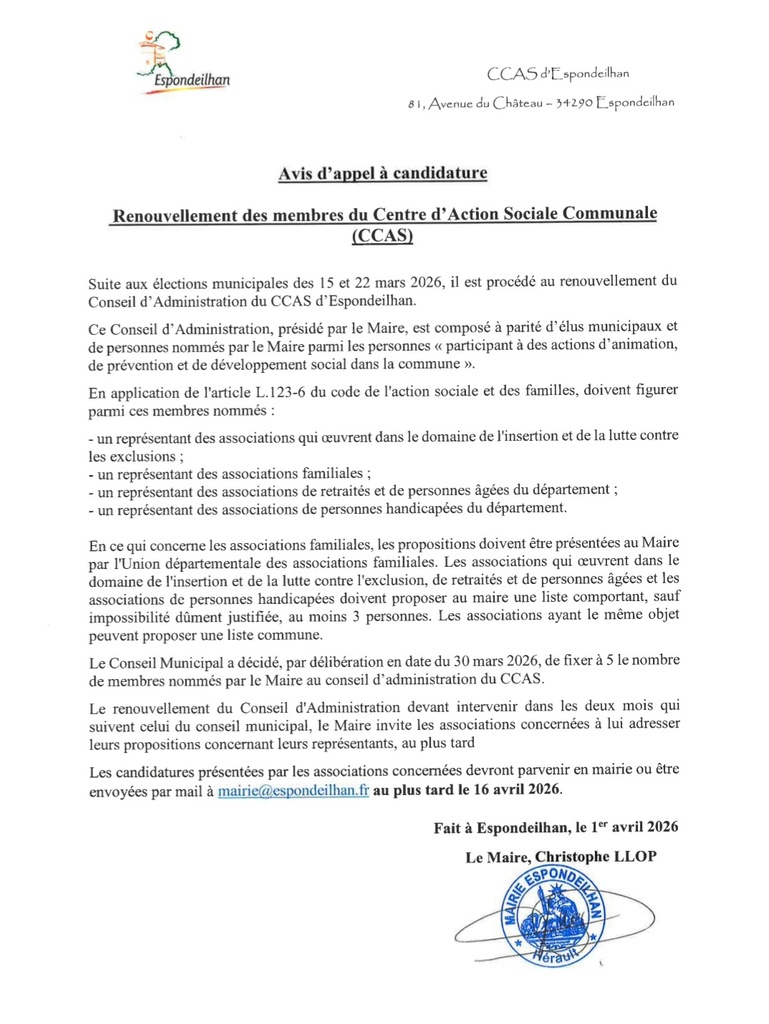 ou être envoyées par mail à rnairie@espondeilhan.fr