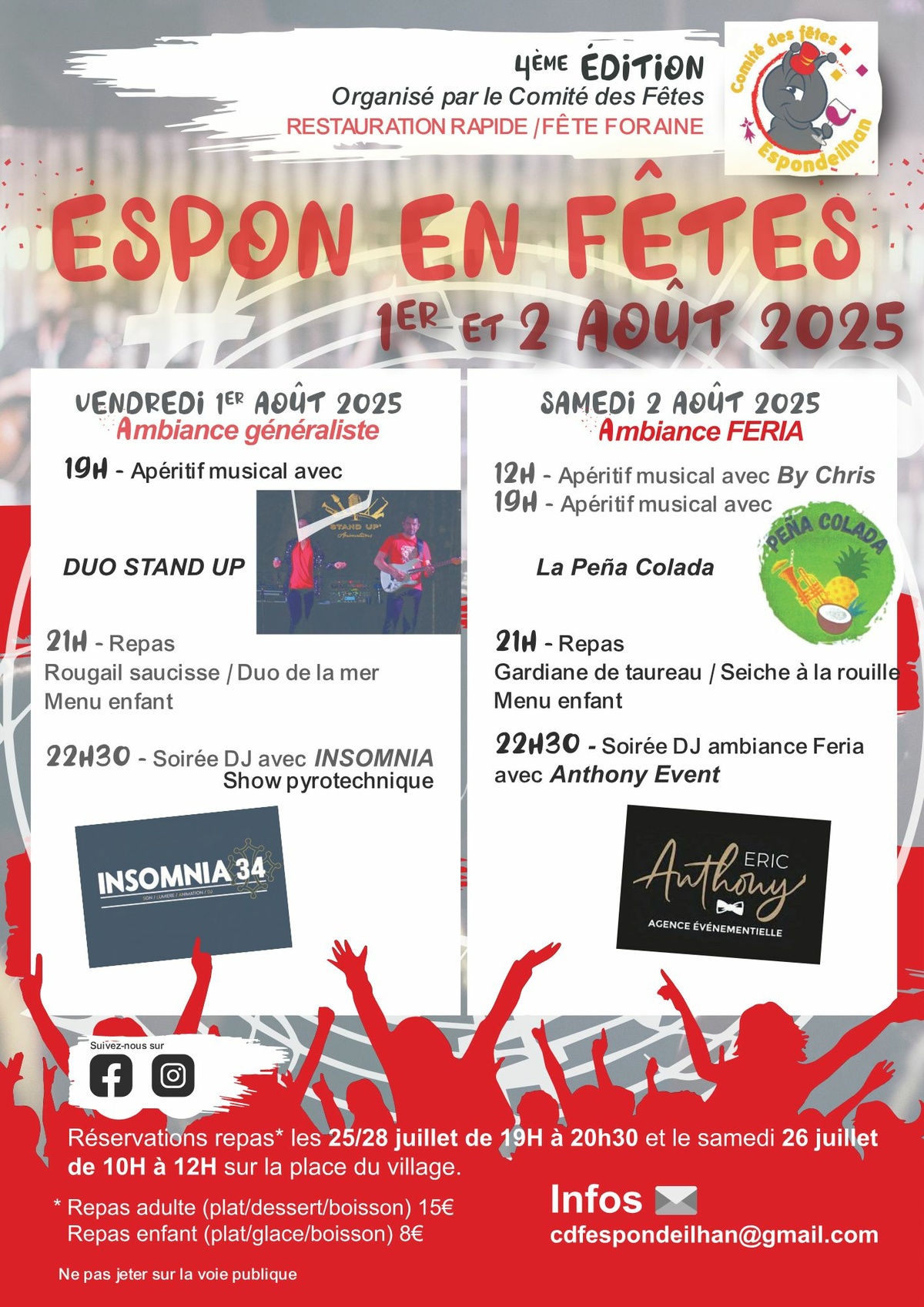 👉 samedi : ambiance Féria avec Pena colada et Eric Anthony