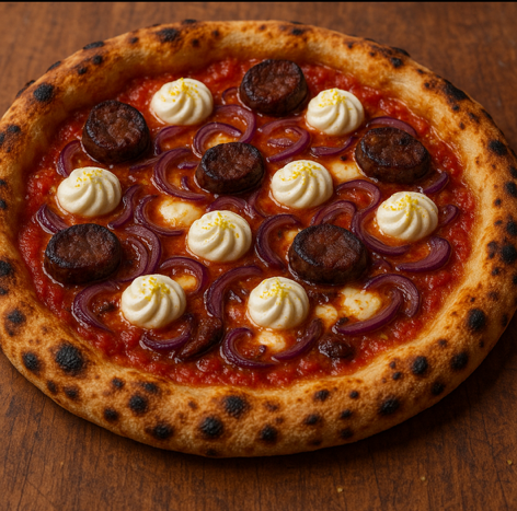 —> avec sauce tomate bio, Figatelli (saucisse corse), miel de châtaignier,