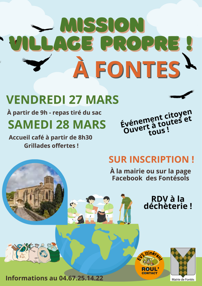 Nous remercions les personnes inscrites pour la "Mission Village Propre", un évènement citoyen ouvert à toutes et tous.