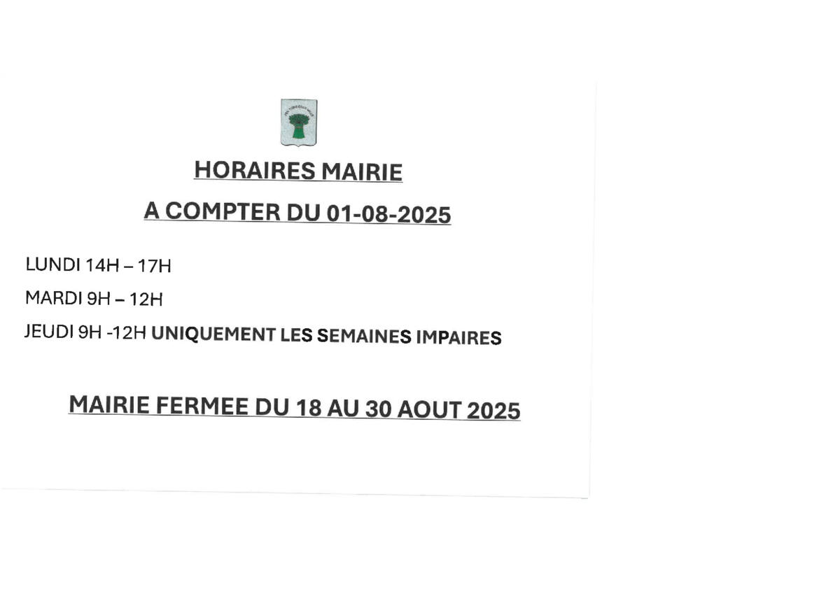 NOUVEAUX HORAIRES MAIRIE A COMPTER DU 01/08/2025