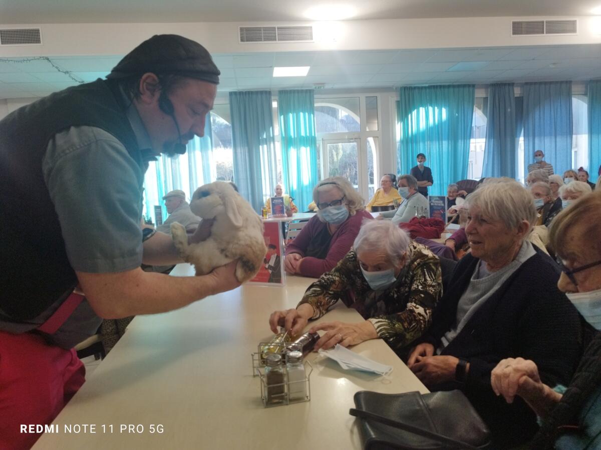 Nous avons eu le plaisir de pouvoir assister à un spectacle de magie à L’ÉCRIN DES SAGES. Entre deux tours de passe-passe, nous avons partagé la traditionnelle galette des rois, un moment d'échange très apprécié avec les résidents de l'autre structure.