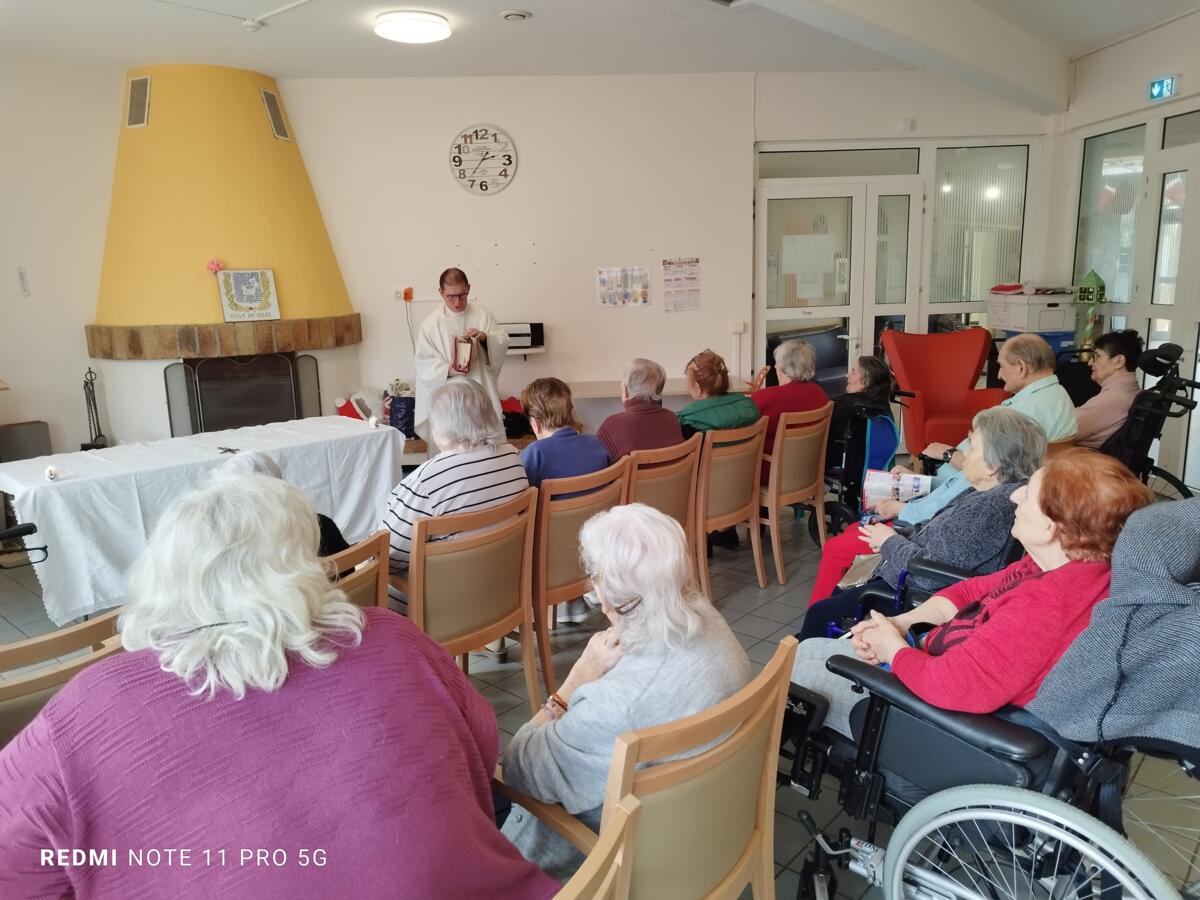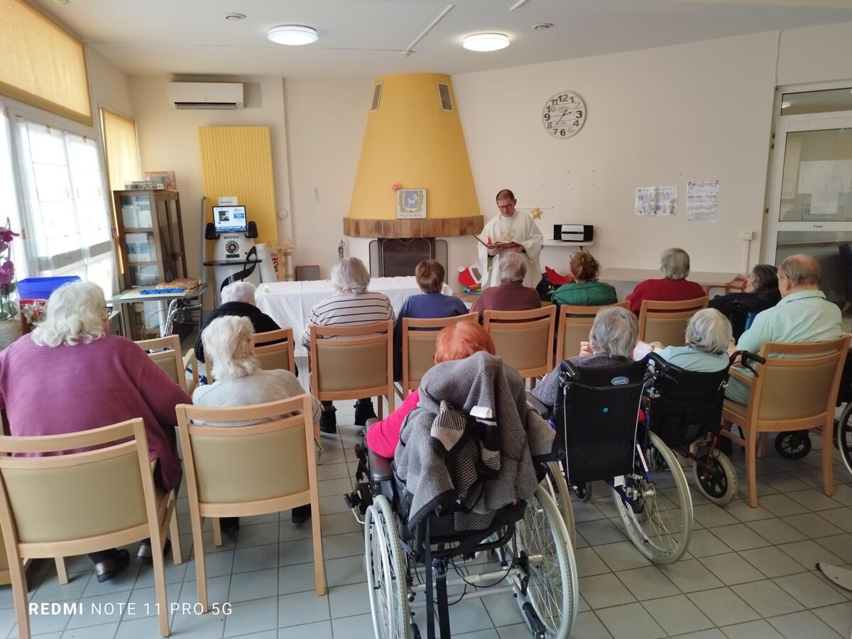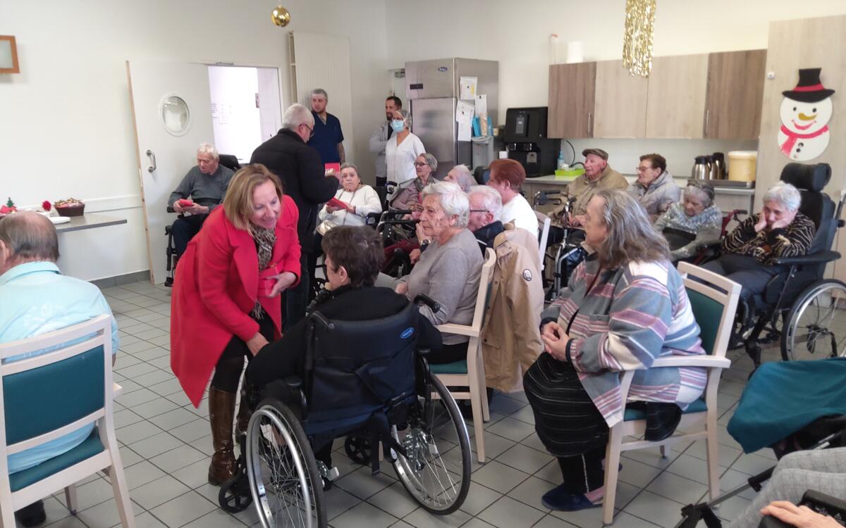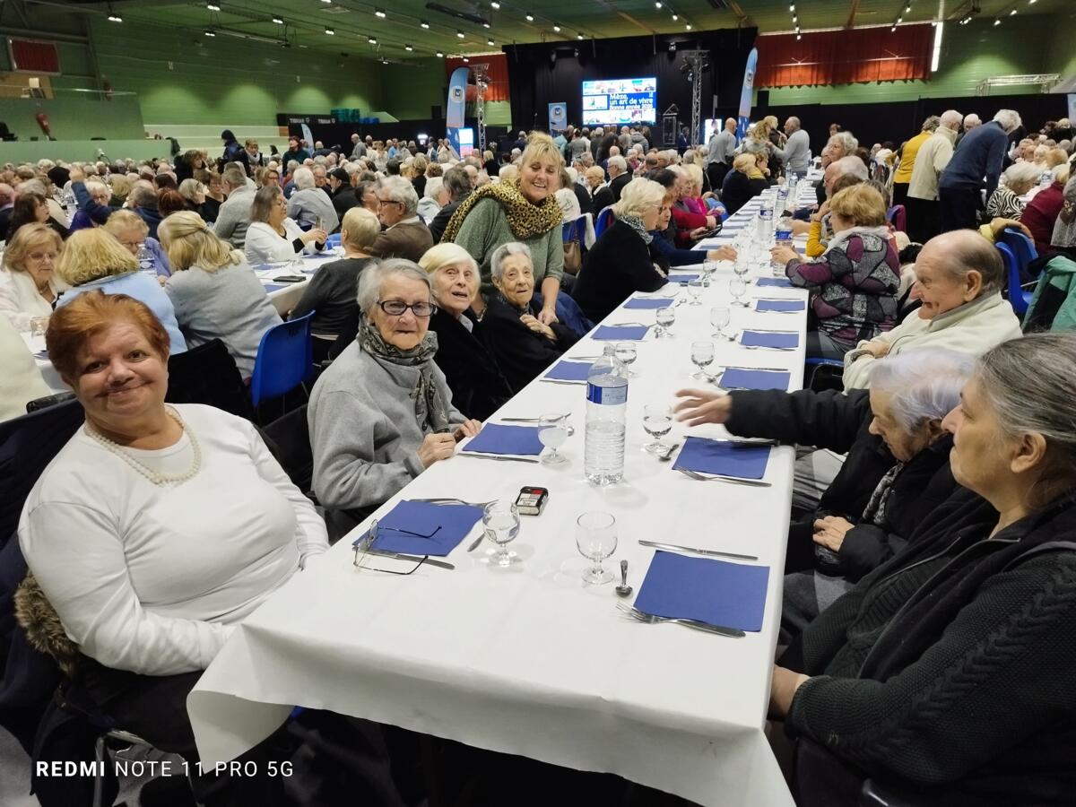 Nous avons également participé au repas des anciens. L'ambiance était au rendez-vous. Le moment fort de la journée fut sans aucun doute la mise à l'honneur de l'une de nos résidentes. Étant la doyenne de l'assemblée, elle a reçu un magnifique bouquet de fleurs des mains de Monsieur le Maire.