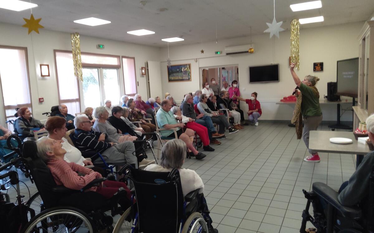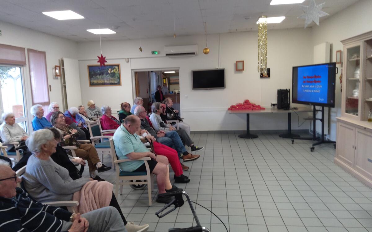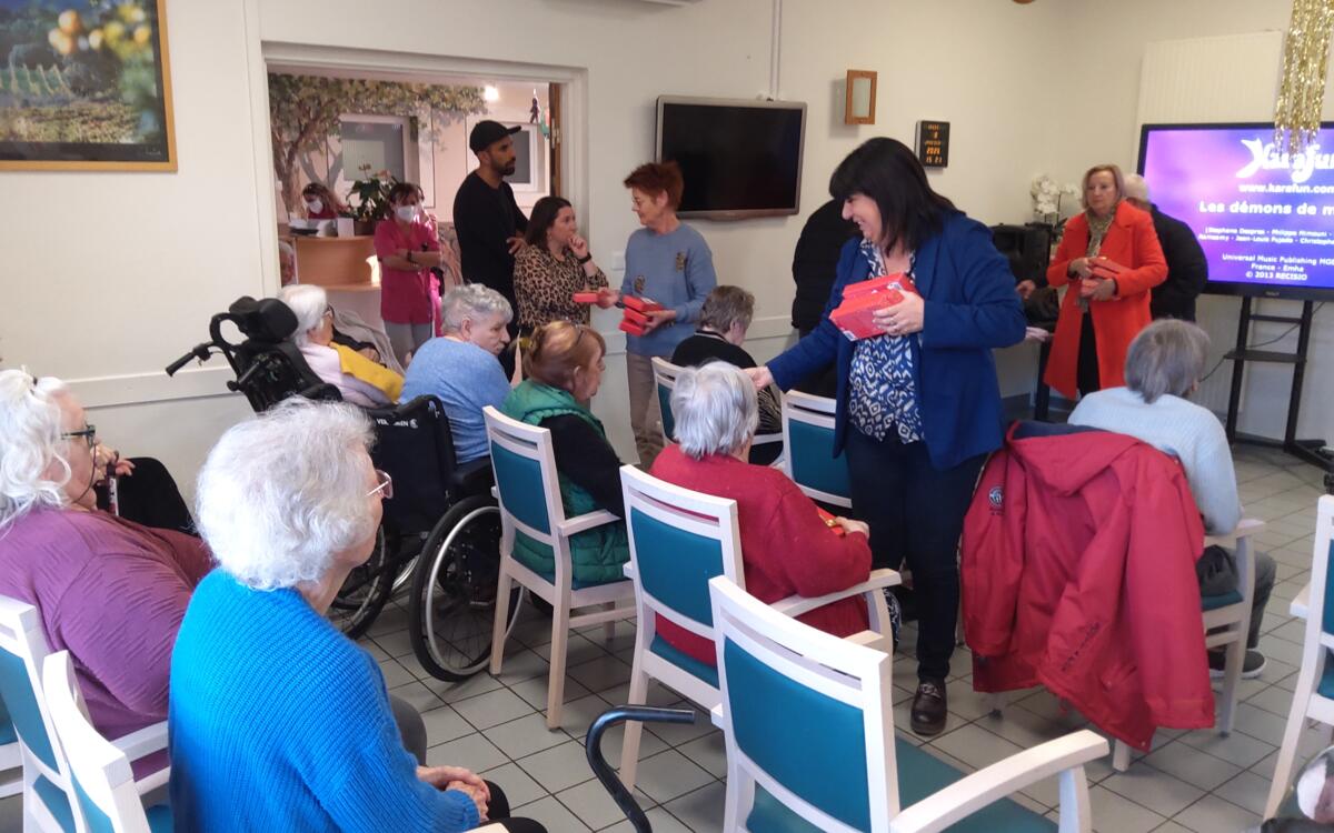 Nous avons célébré les vœux en organisant un karaoké géant, les résidents ainsi que le personnel ont poussé la chansonnette dans une ambiance joyeuse. Chacun des résidents a reçu une boîte de chocolats.
