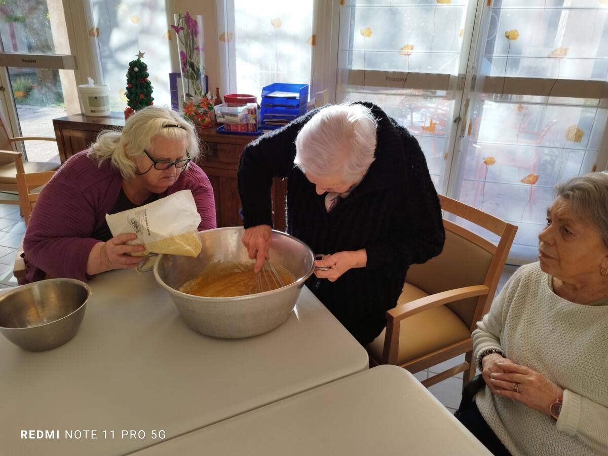 Cette semaine a été placé sous le signe de la convivialité, des sorties et des traditions. Nos résidents ont profité d'un programme riche en émotions et en gourmandises.C'est avec enthousiasme que nos pâtissières ont participé à l'atelier confection de la galette des rois. Chacune a pu mettre la main à la pâte.