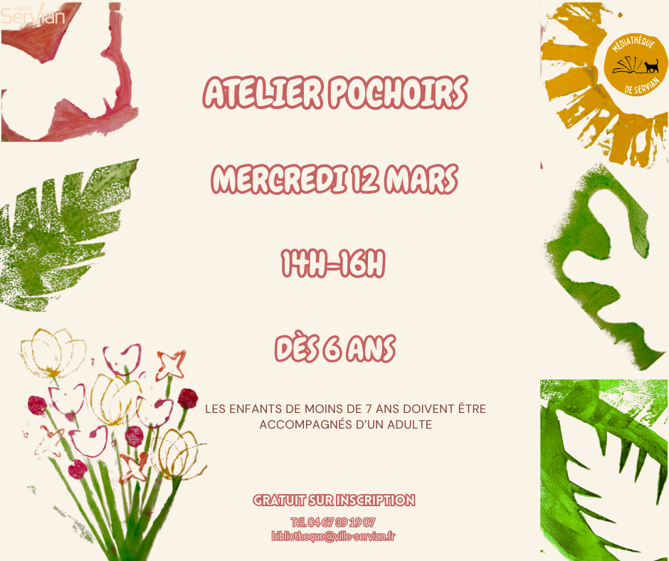 ☎ Inscrivez-vous au 04.67.39.19.07 ou par mail à bibliotheque@ville-servian.fr