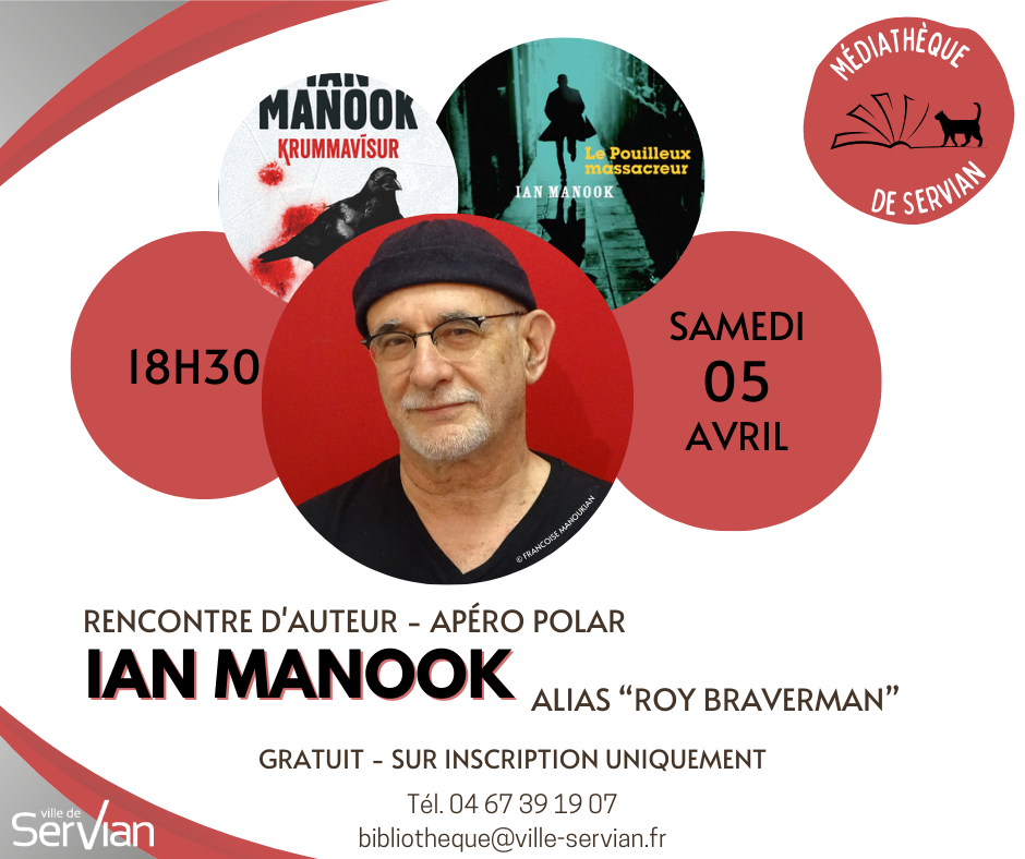 ✒📚 Venez à la rencontre de Ian Manook, le Samedi 05 Avril à 18h30, à la Médiathèque de Servian. 📚✒