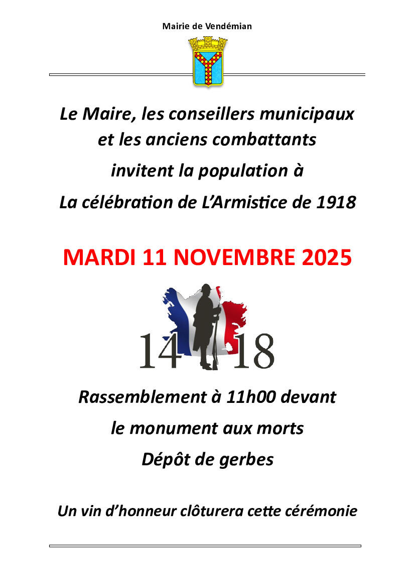 Rappel: Cérémonie du Mardi 11 novembre 2025
