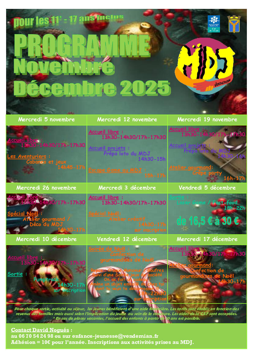 Programme du MDJ 11-17ans de Novembre et Décembre 2025