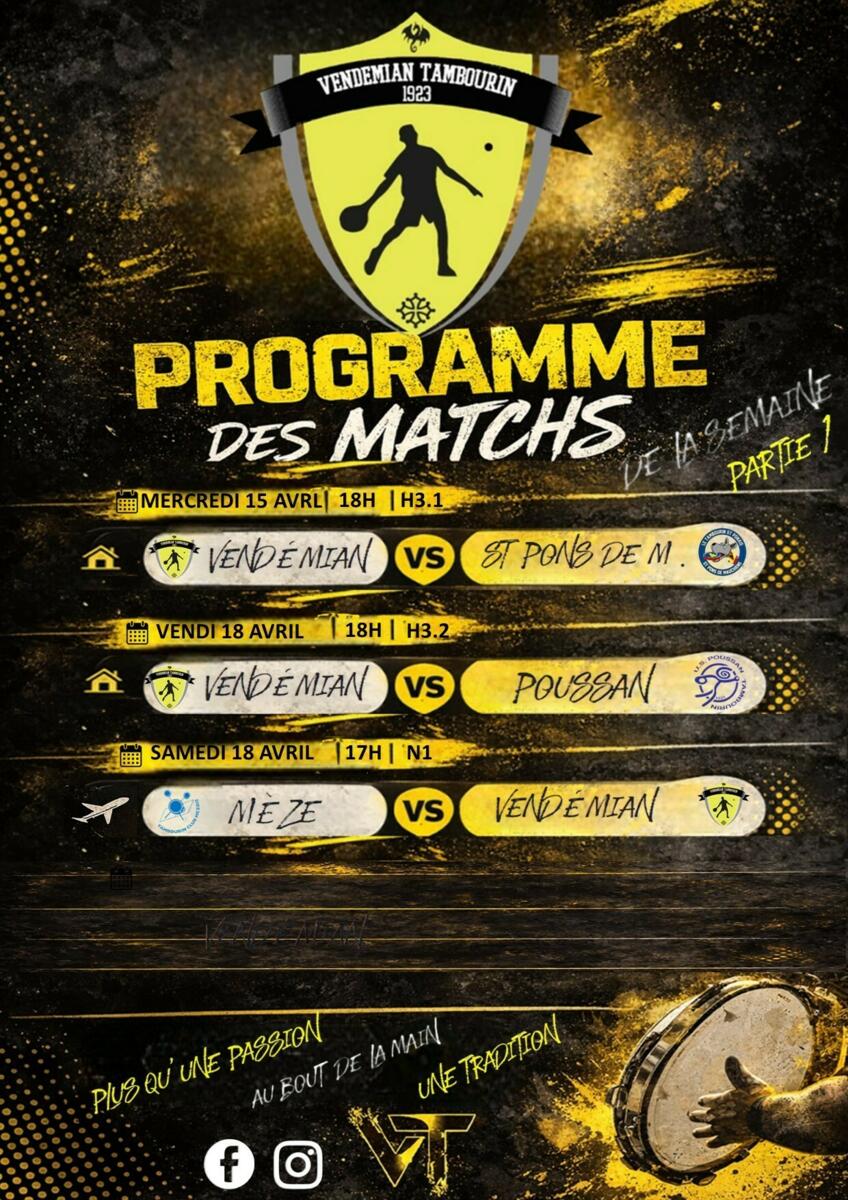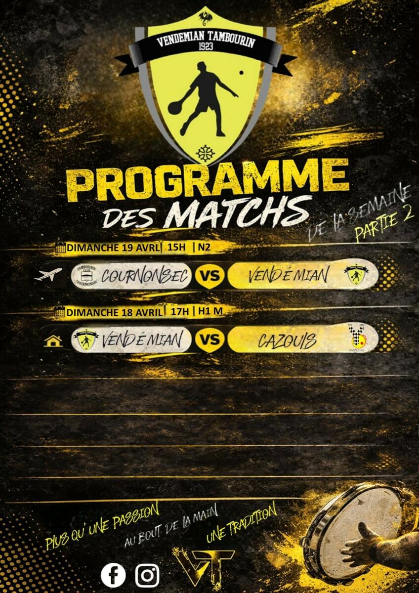 Tambourin: résultats et matchs à venir 13/04/2026 Voici les résultats du week-end et les matchs à venir