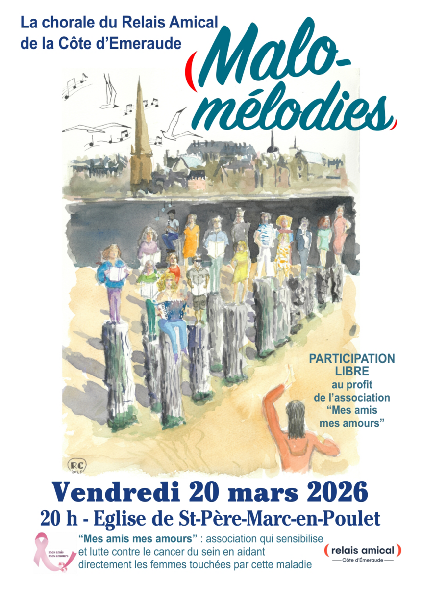 CHORALE MALO MELODIES 09/03/2026 MALO MELODIES CHORALE VENDREDI 20 MARS - 20H EGLISE DE SAINT-PERE-MARC-EN-POULET Source : Mairie de Saint-Père-Marc-en-Poulet