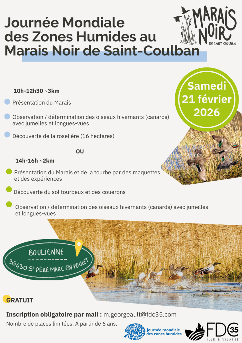MARAIS NOIR ST-COULBAN 21/02/2026 JOURNEE MONDIALE ZONES HUMIDES SAMEDI 21 FEVRIER LA BOULIENNE - ST-PERE Source : Mairie de Saint-Père-Marc-en-Poulet