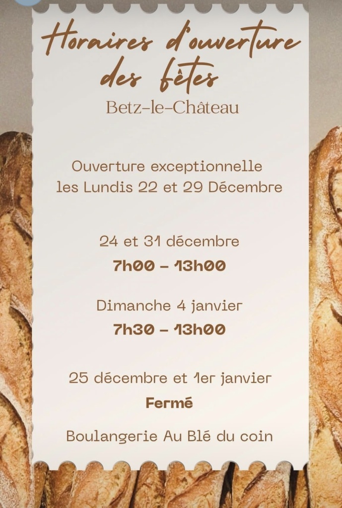 Votre mairie / Actualités / Boulangerie - Horaires d'ouverture des fêtes