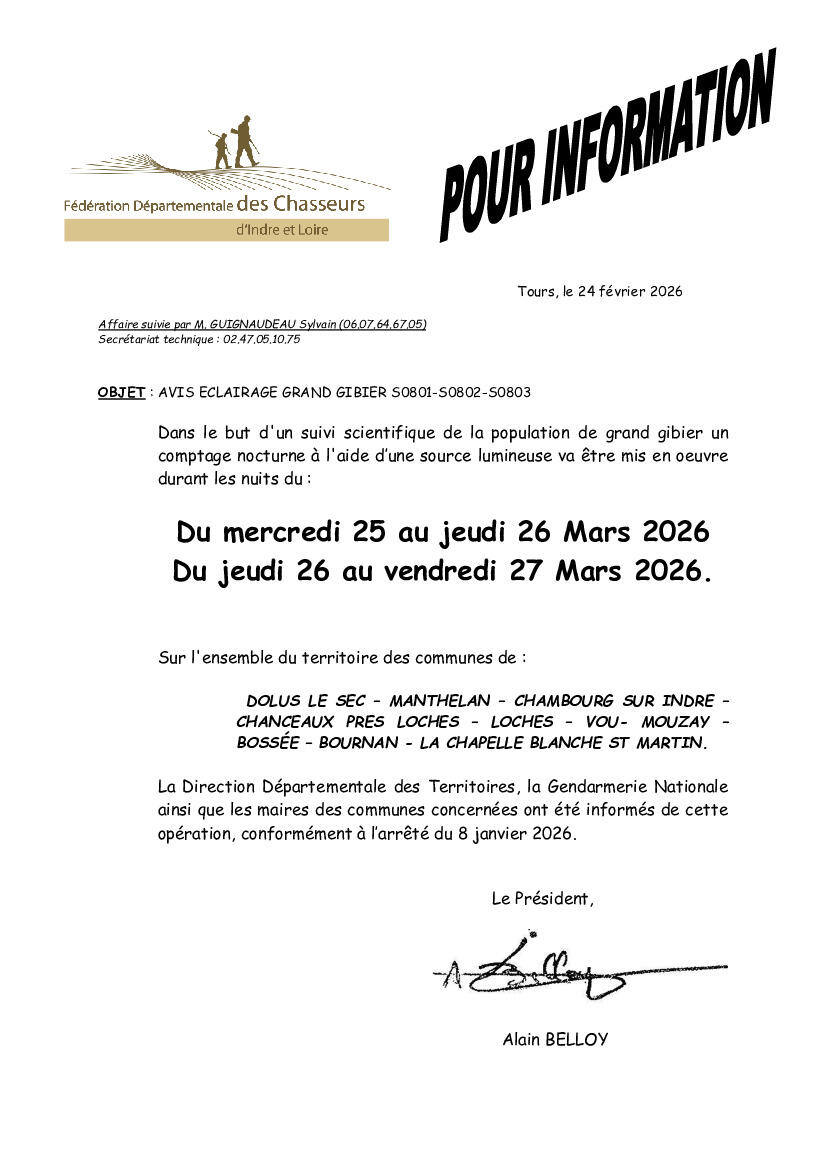 Fédération Départementale des Chasseurs d'Indre et Loire