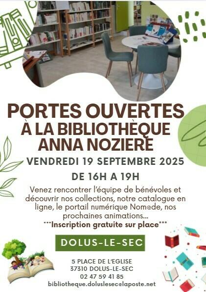 Portes ouvertes Bibliothèque 10/09/2025 Portes ouvertes le vendredi 19 septembre - inscription gratuite sur place