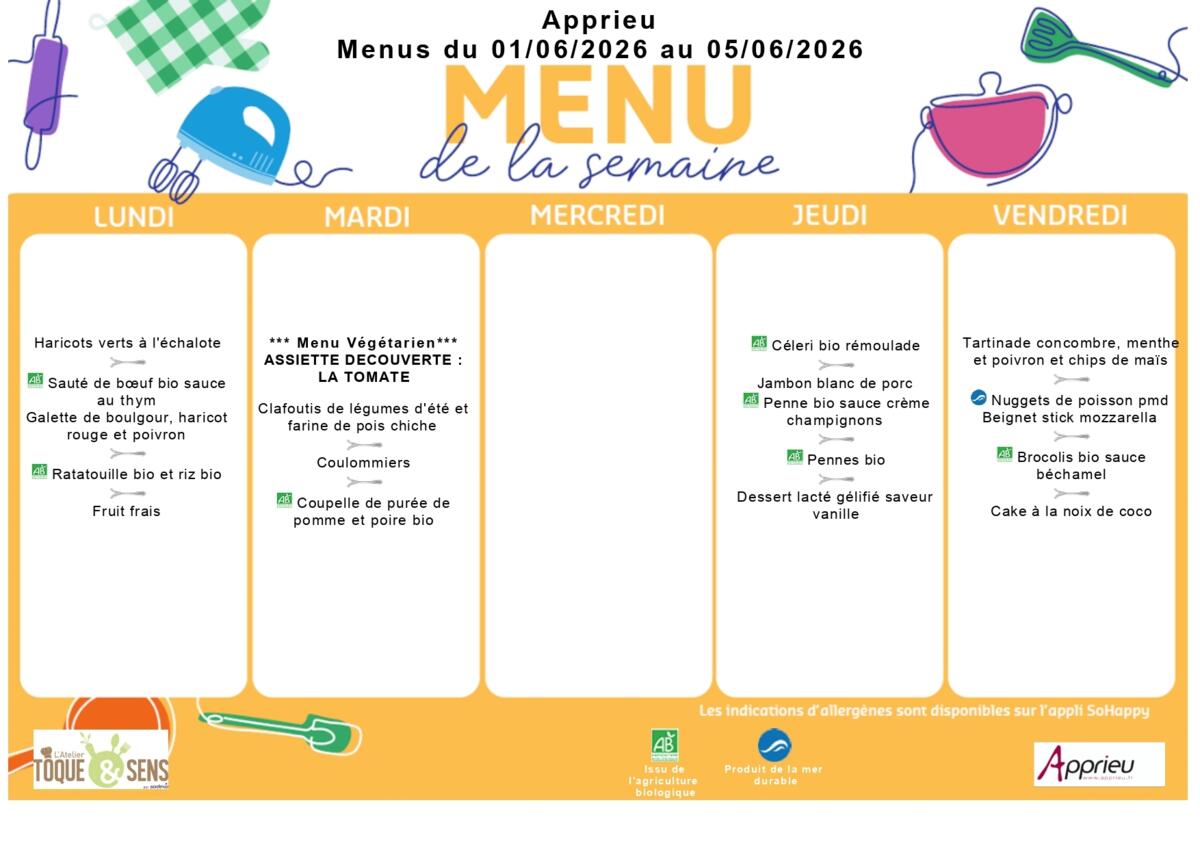/ Menus du 1er au 5 juin