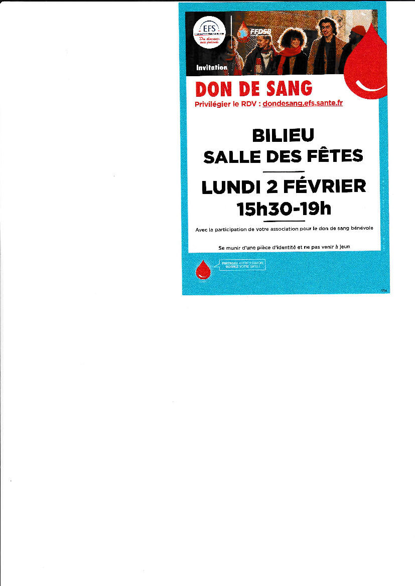 Don du sang à Bilieu - lundi 2 février de 15h30 à 19h