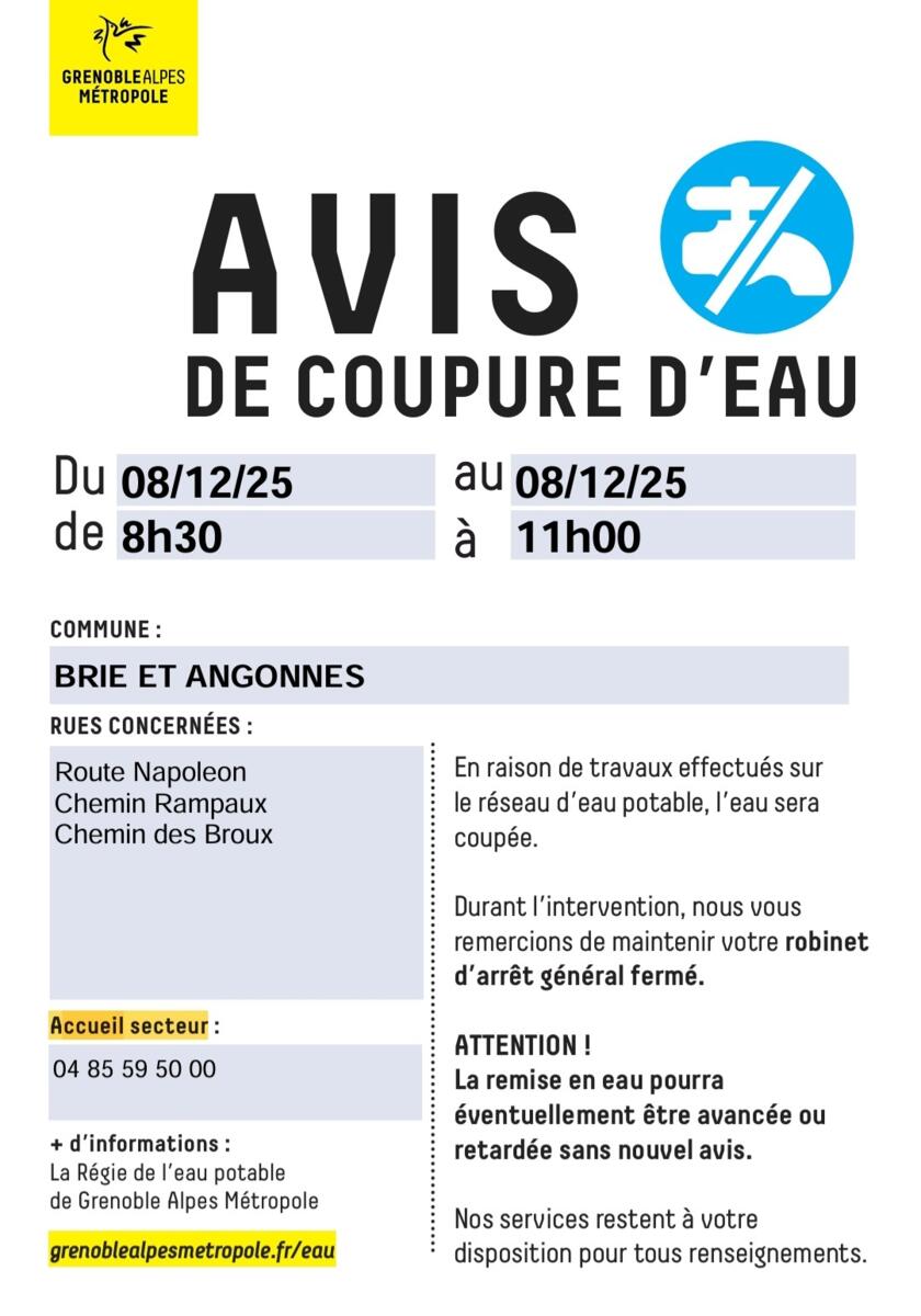 Avis de coupure d'eau
