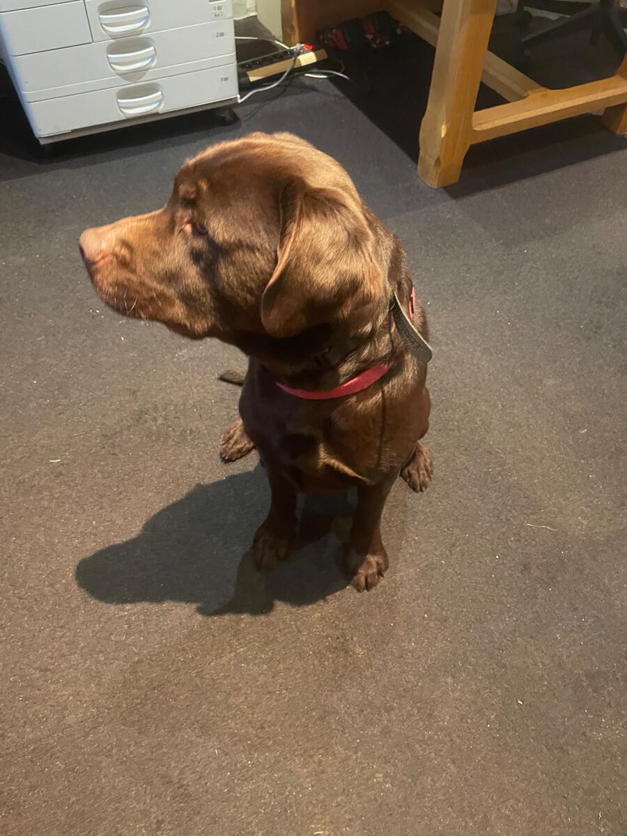 Un gentil labrador mâle brun chocolat a été trouvé errant à proximité de la mairie et attend ses maîtres au plus vite à la mairie.