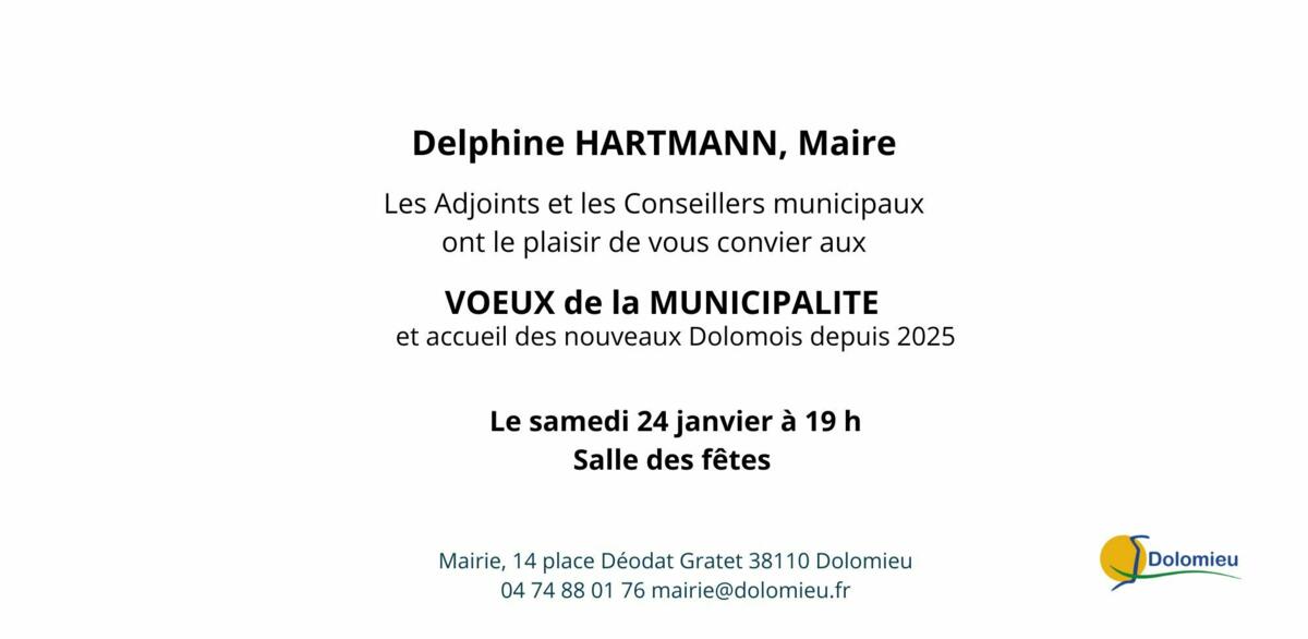 Merci de vous faire connaître auprès des services de la mairie au 04 74 88 01 76 ou accueil@dolomieu.fr et de nous confirmer votre présence pour une meilleure organisation au plus tard le 15 janvier.