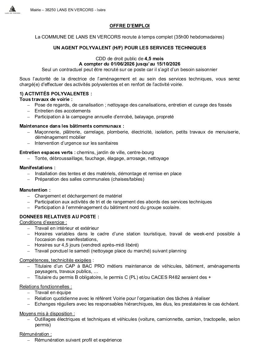 La mairie de Lans recrute