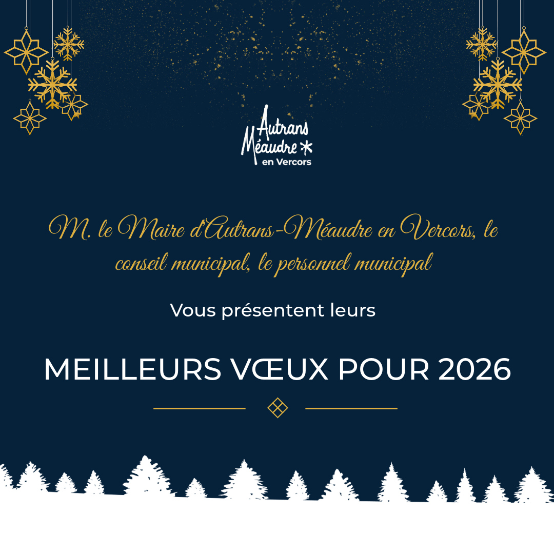 Pour celles et ceux qui n’ont pas pu assister à la cérémonie des vœux du Maire, qui s’est tenue le samedi 10 janvier 2026, la présentation PowerPoint accompagnée du discours est désormais disponible sur le site de la mairie d’Autrans-Méaudre en Vercors