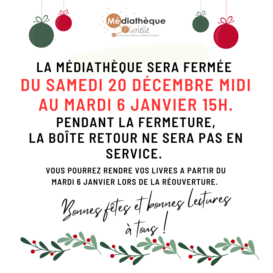 RAPPEL - FERMETURE MEDIATHEQUE NOËL 2025