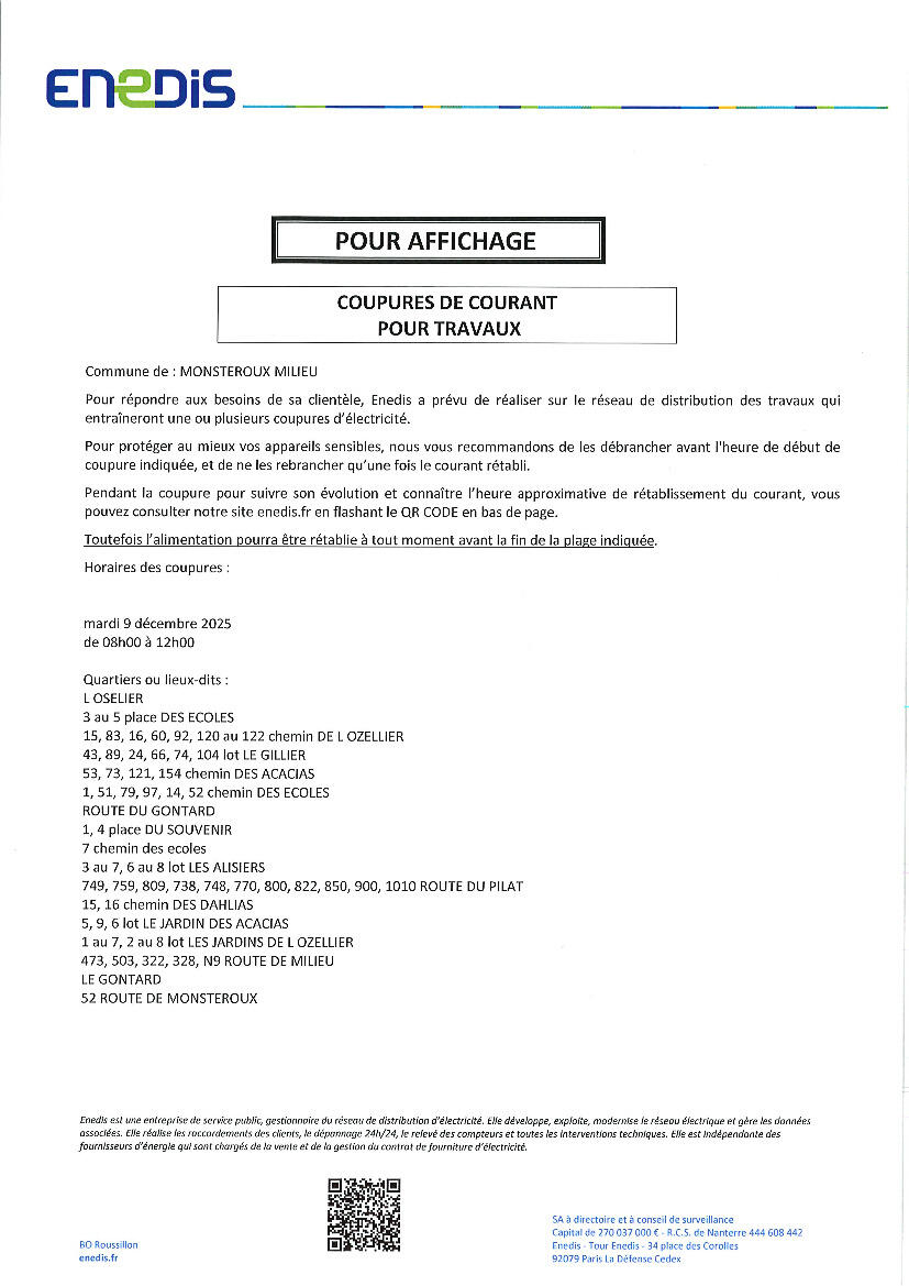⚡ ENEDIS - COUPURE DE COURANT LE MARDI 09/12/25 ⚡