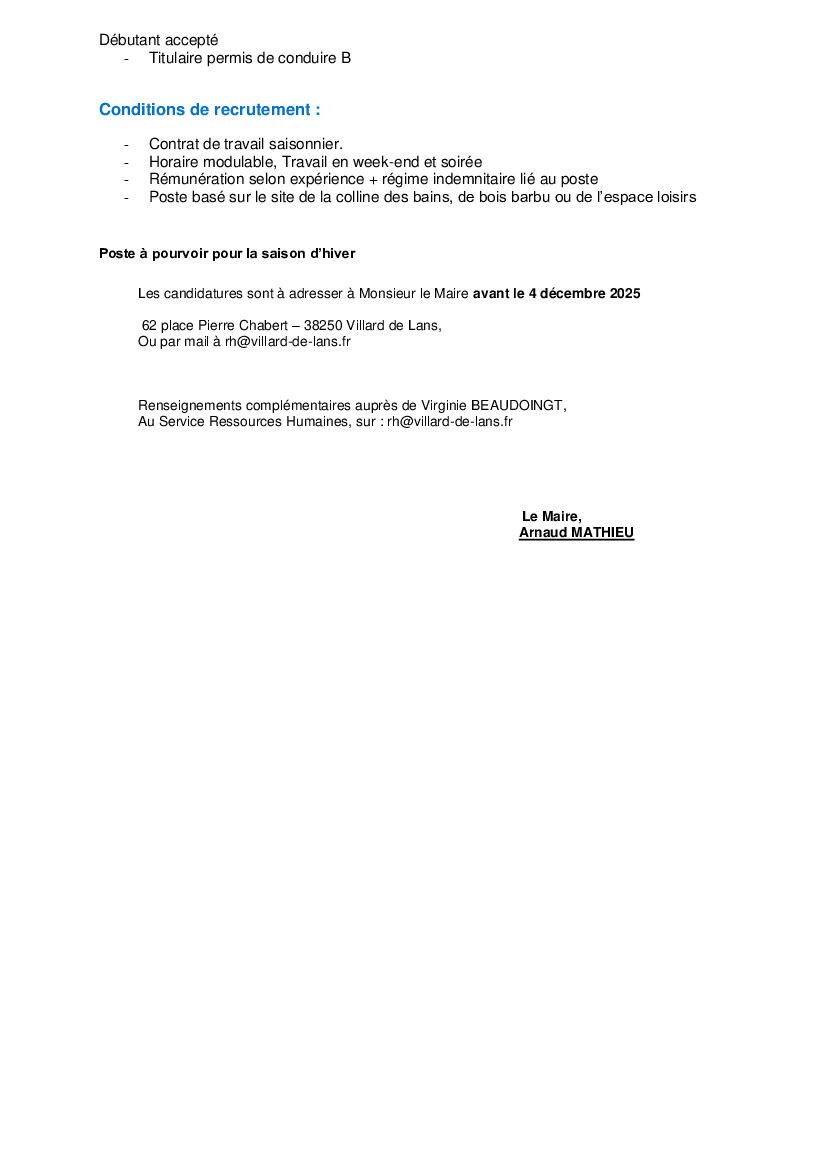 Votre mairie / Actualités / OFFRE D'EMPLOI