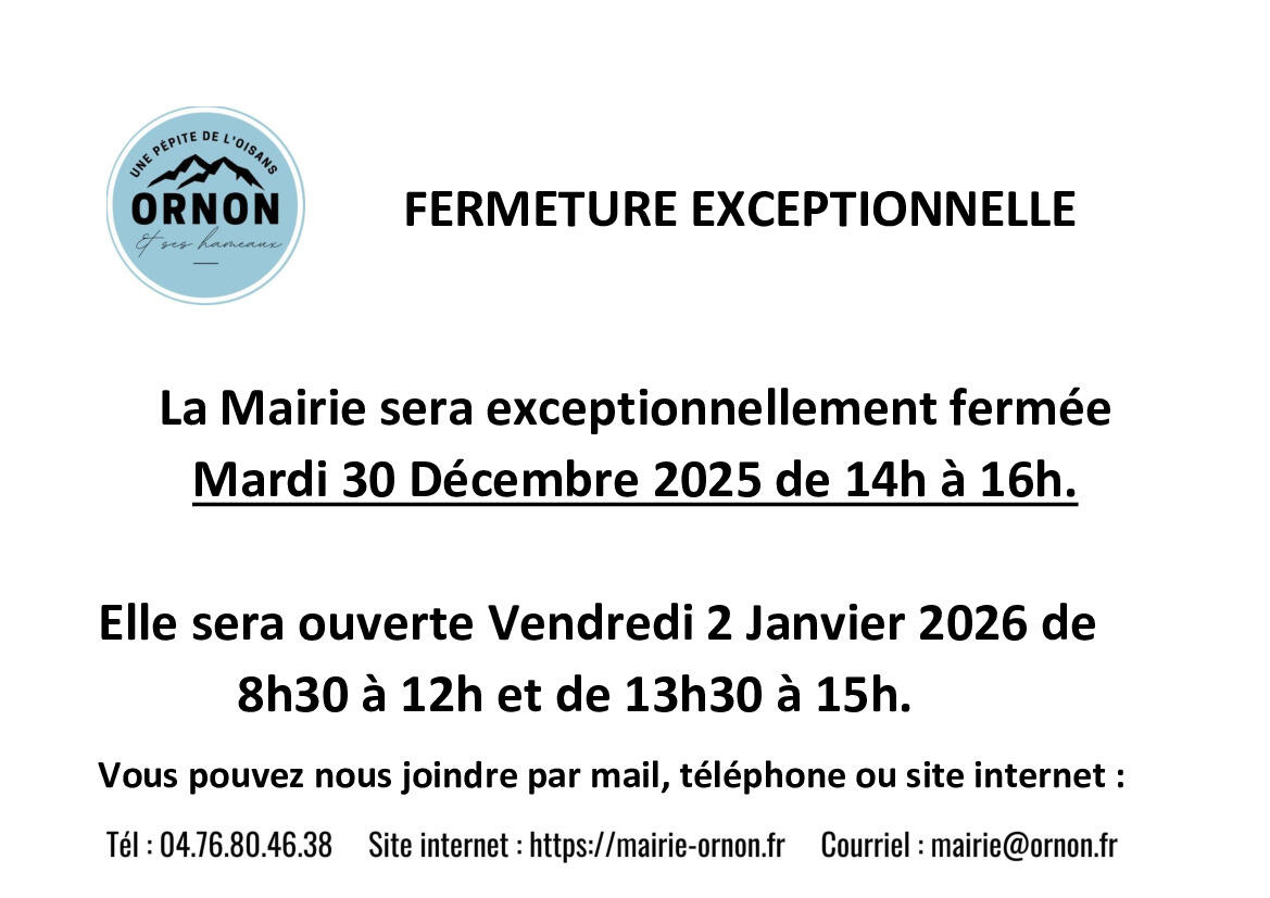 Fermeture exceptionnelle de la Mairie