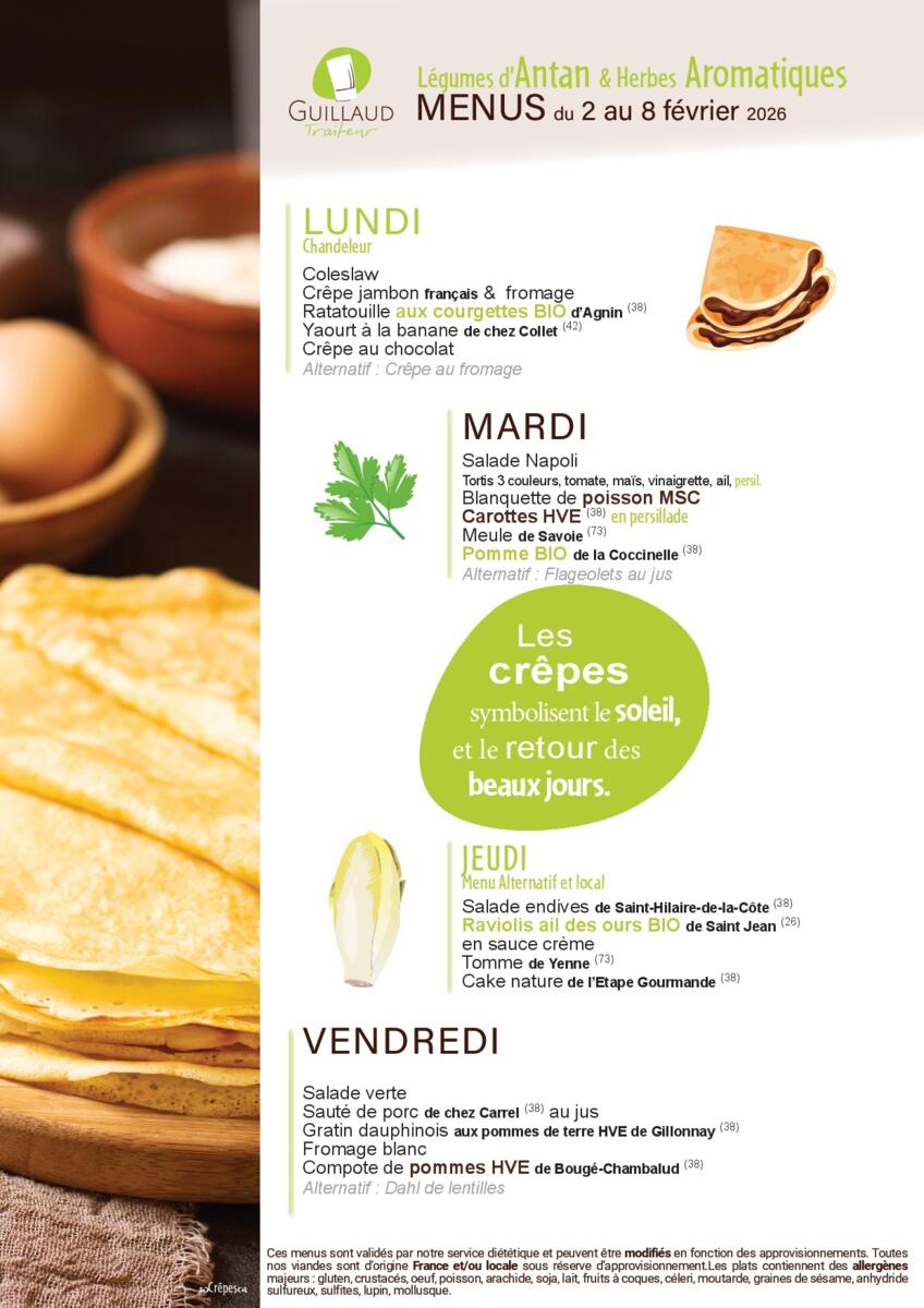 🫓MENUS DU 2 AU 8 FÉVRIER 🫓