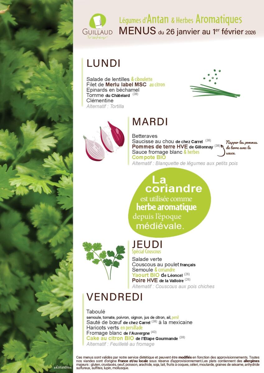 ☘️ MENUS DU 26 JANVIER AU 1er FÉVRIER ☘️