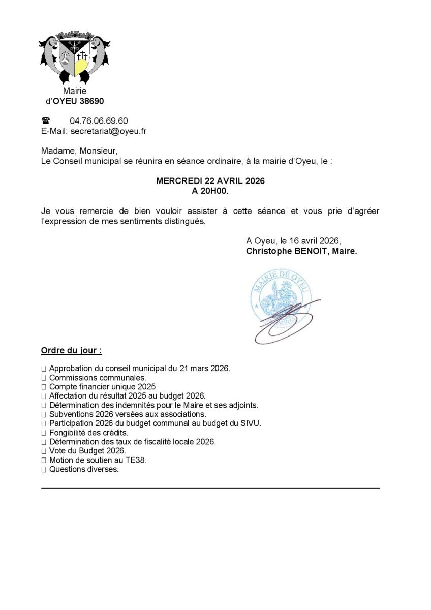 Votre mairie / Actualités / PROCHAIN CONSEIL MUNICIPAL